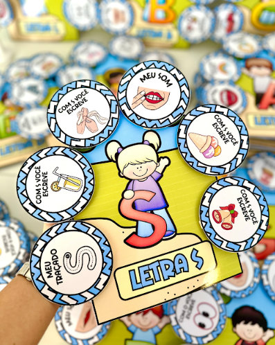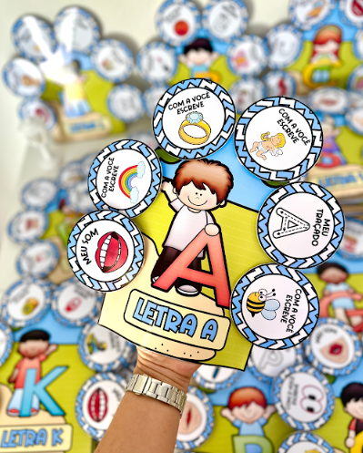Recurso excelente para atrair a atenção das crianças e trabalhar conteúdos como: som das letras, formato e traçado, nome das letras e figuras que iniciam com cada letra.