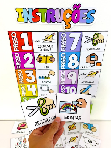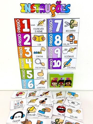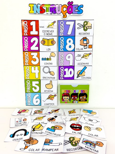 Com esse apoio visual, os alunos têm um guia completo de como executar as tarefas, o que reduz dúvidas e aumenta a confiança deles durante o processo. Ideal para manter a organização na sala de aula, incentivar o foco e tornar o aprendizado mais fluido e dinâmico.