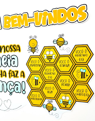 Esse painel de boas-vindas no tema abelhas foi pensado para acolher sua equipe com carinho e reforçar a